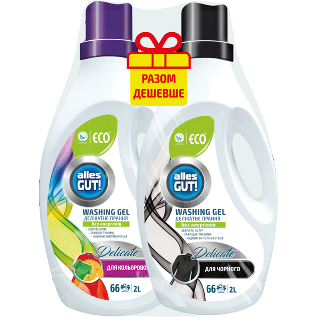 Гель для прання Alles GUT! Eco Для кольорової білизни 2 л + Для чорних тканин 2 л (4820189880660)