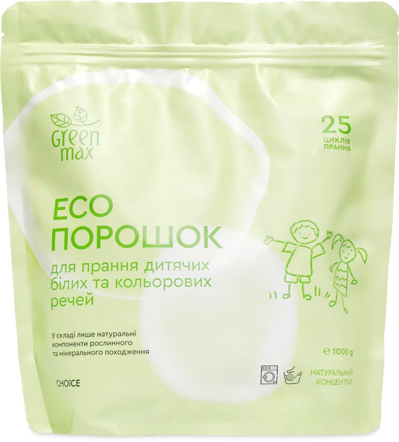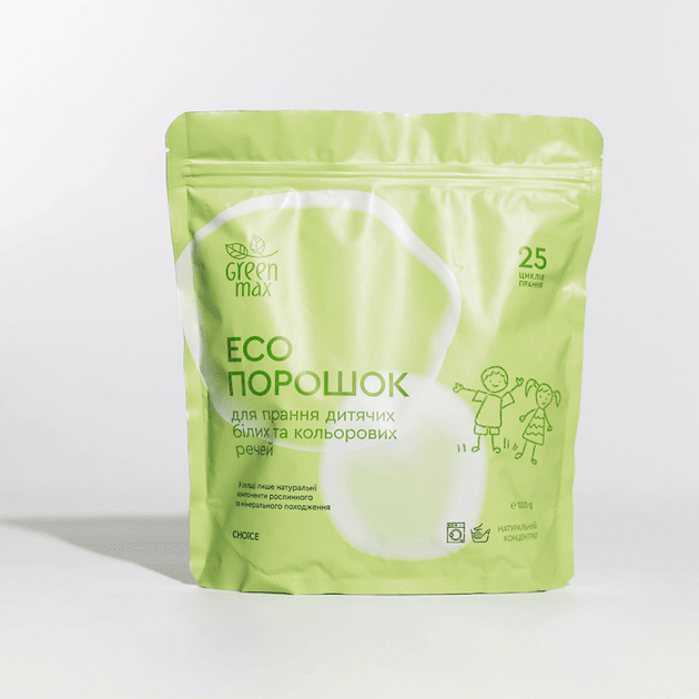 ЕКОпорошок для прання дитячих білих та кольорових речей 1 кг / 25 циклів Green Max Choice