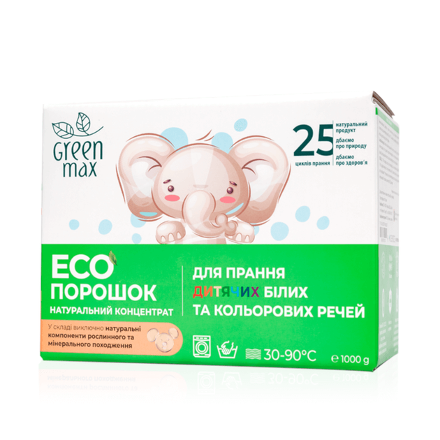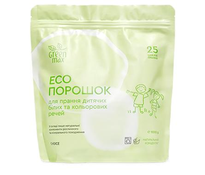ЕКОпорошок Green Max для прання дитячих білих та кольорових речей 1 кг