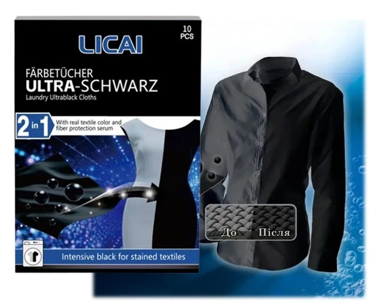 Серветки для прання та відновлення чорного кольору Licai Ultra Schwarz 2in1 10 штук