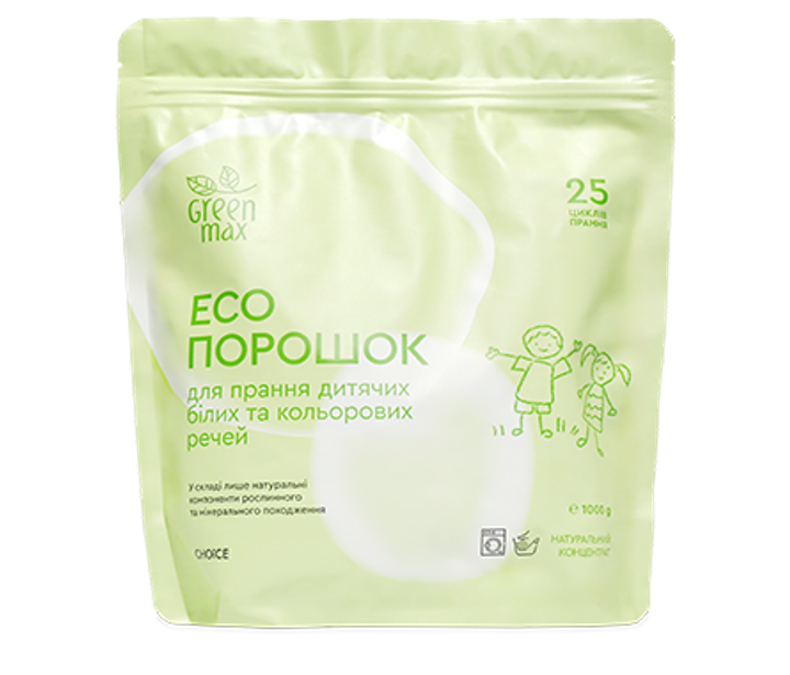 Екопорошок для прання дитячих білих та кольорових промов, оновлень zip-пакет 1000г