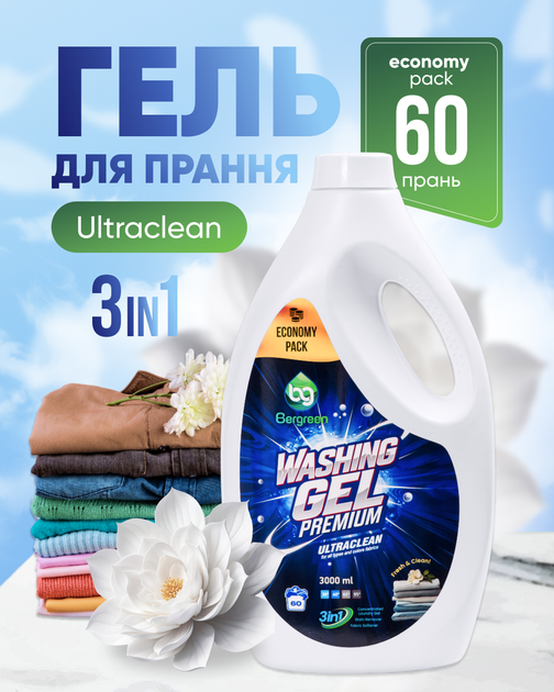 Гель для прання Bergreen Washing Gel Premium Ultraclean 3000 мл