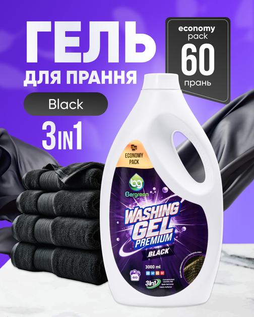Гель для прання темного та чорного одягу Bergreen Washing Gel Premium Black 3000 мл