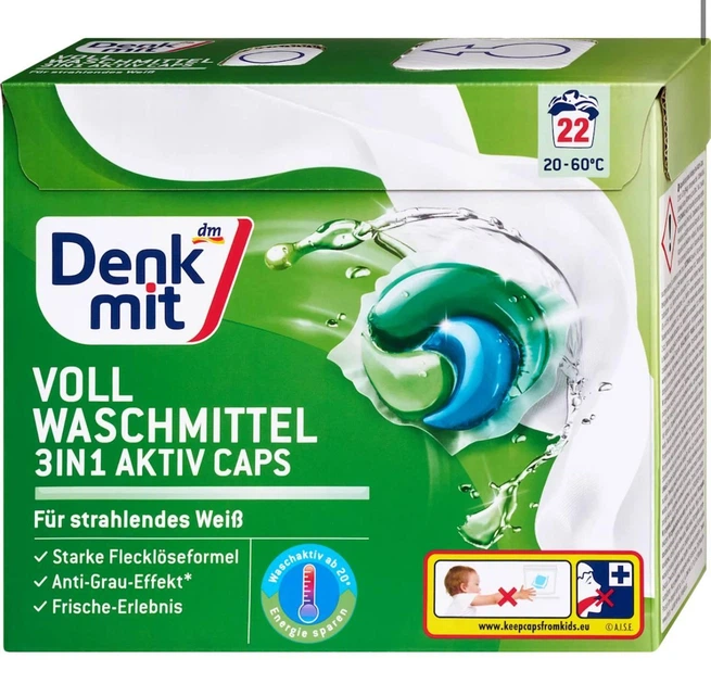 Капсули Denkmit Vollwaschmittel Caps 3 in1 Aktiv для прання білих речей 22 шт