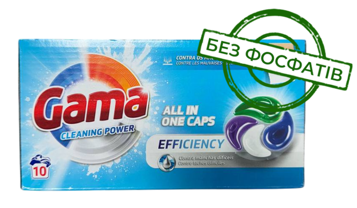 Капсули для прання Gama Cleaning Power 4в 1 від неприємних запахів і сильних забруднень, 10 шт