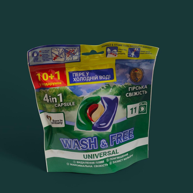Капсули для прання Wash&Free 11 шт Гірська свіжість (універсальні)