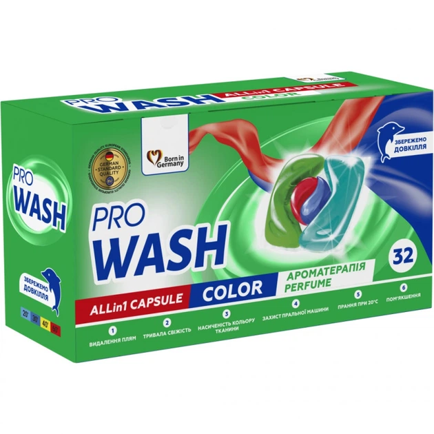 Капсули для прання Pro Wash All in 1 Color Ароматерапія 32 шт. (4262396144676) (340820)