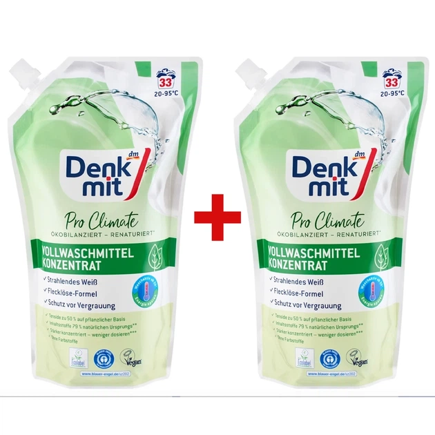 Концентрований гель для прання білої білизни Denkmit Pro Climate, 1 л, 33 прання, 2 шт – ефективне відбілювання та догляд за
