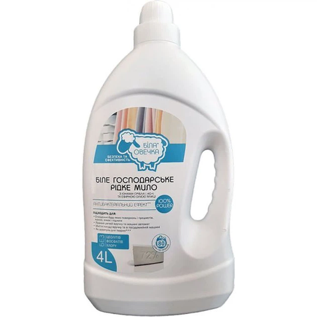 Гель для прання Біла Овечка 100 Power Біле господарське мило 4 л (4820205301513)