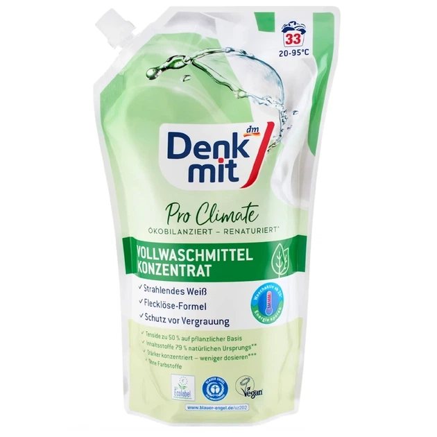 Концентрований гель для прання білої білизни Denkmit Pro Climate, 1 л, 33 прання – ефективне відбілювання та захист тканин