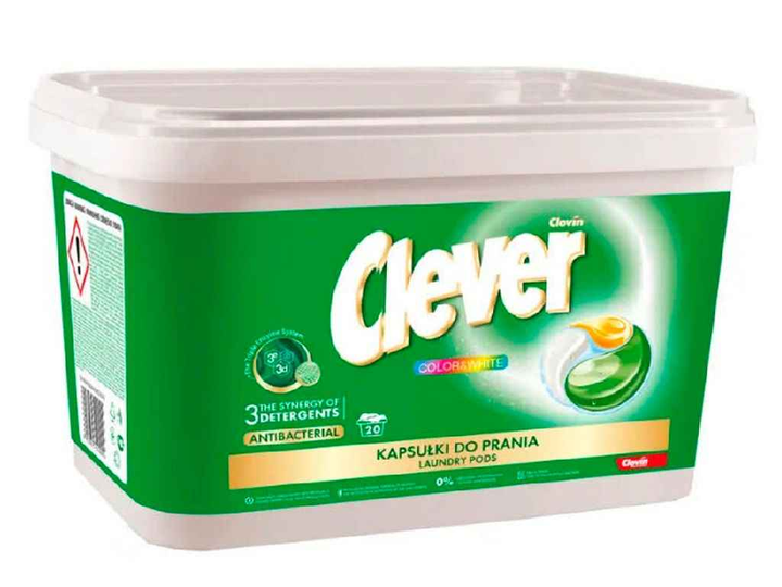 Капсули для прання CLEVER 20шт гелеві COLOR & WHITE3 камери