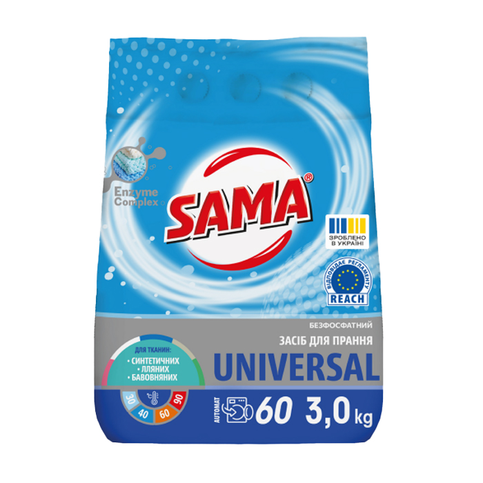 Пральний порошок Sama Universal Гірська свіжість, 60 циклів прання, 3 кг