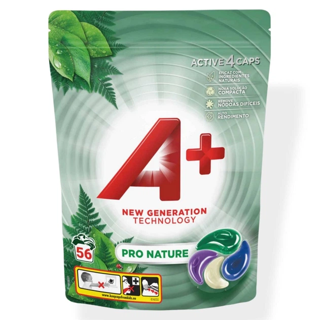 Капсули для прання А+ Pro Nature 4в1 для всіх типів тканин, 56 шт