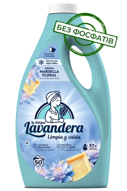 Пральний рідкий порошок La Antigua Lavandera Floral з ароматом квітів, 2.5 л (50 прань)