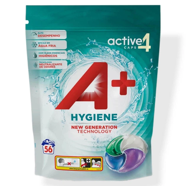 Капсули для прання А+ Hygiene 4в1 для всіх типів тканин, 56 шт