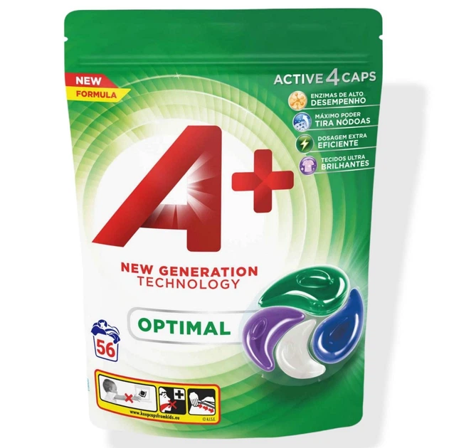 Капсули для прання А+ Optimal 4в1 для всіх типів тканин, 56 шт