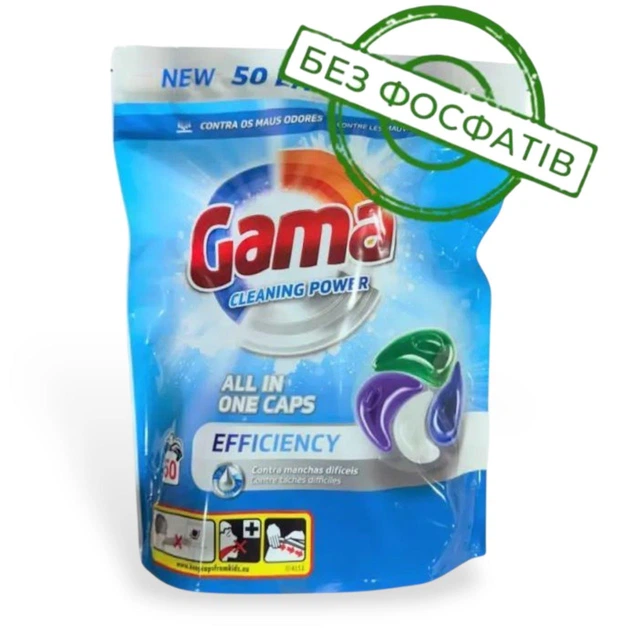 Капсули для прання Gama Cleaning Power 4в1 від неприємних запахів і сильних забруднень, 50 шт