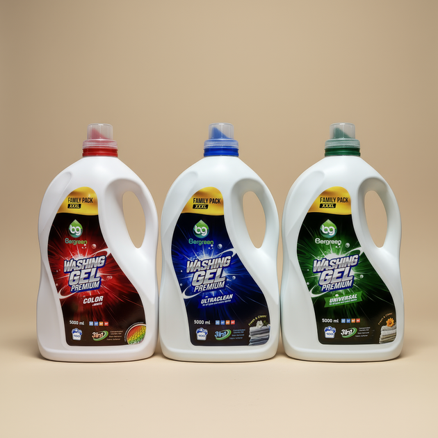 Набір гелів для прання Bergreen Washing Gel Premium 3 шт (Universal 5 л + Ultraclean 5 л + Color&White 5 л)