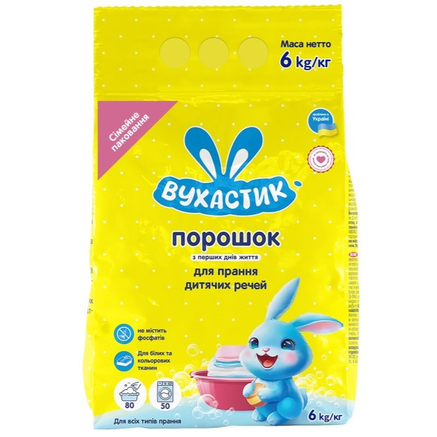 Пральний порошок для прання дитячої білизни Вухастик , 0+, 6 кг