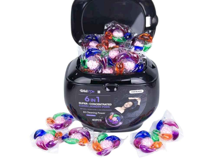Капсули для прання WELLME 40шт д/чорних речей Парфумовані з гранулами 6в1 Black
