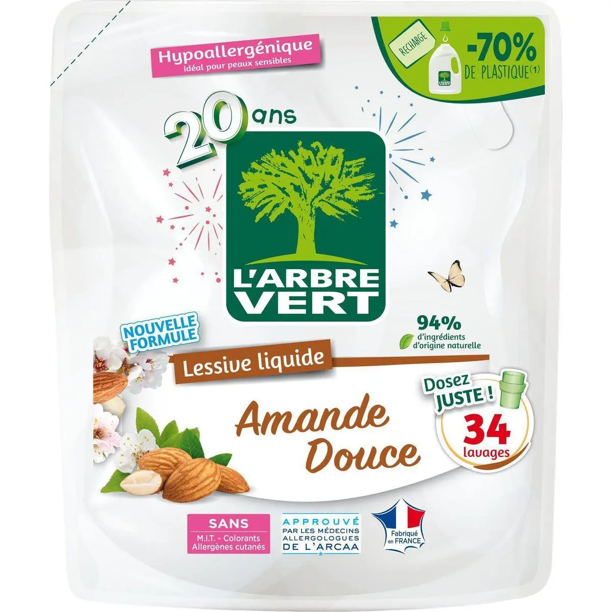 Рідкий засіб для прання L'Arbre Vert Солодкий мигдаль, запасний блок, 1,53 л