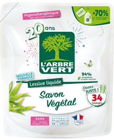 Рідкий засіб для прання L'Arbre Vert Марсельське мило Запасний блок 34 прання 1.53 л (3450601046513)
