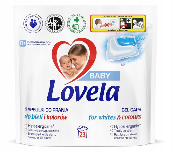 Гіпоалергенні капсули для прання Lovela Baby 0+ для білого та кольорового дитячого одягу і білизни, 23 шт