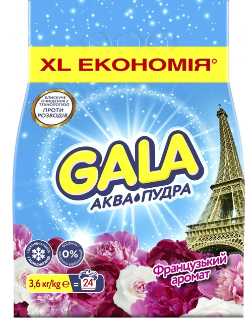 Пральний порошок Gala Аква-Пудра Французький аромат 3.6 кг (8006540519363)