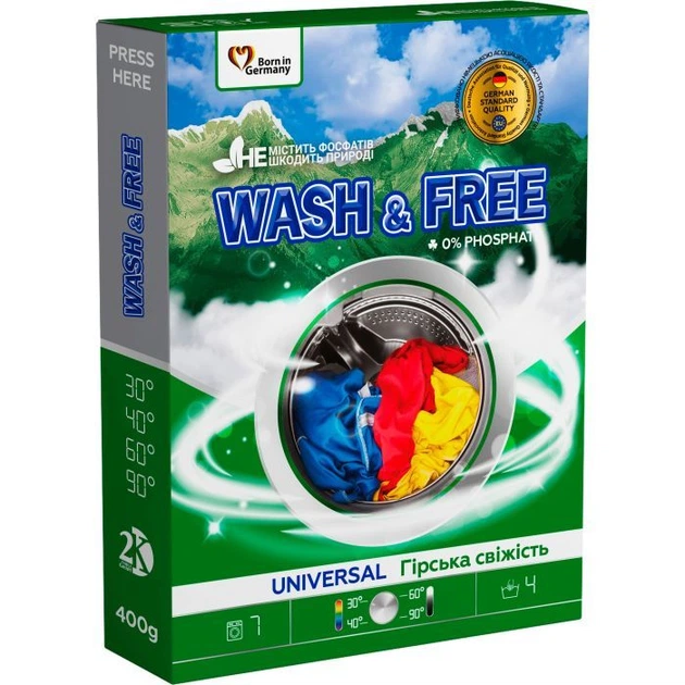 Пральний порошок Wash&Free Universal Гірська свіжість 400 г (4262396141897)