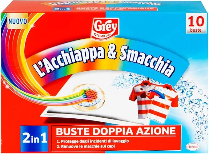 Плямовивідник для кольорових речей (пакетик) та вловлювач кольорів Grey L'Acchiappa e Smacchia, 10 шт в уп