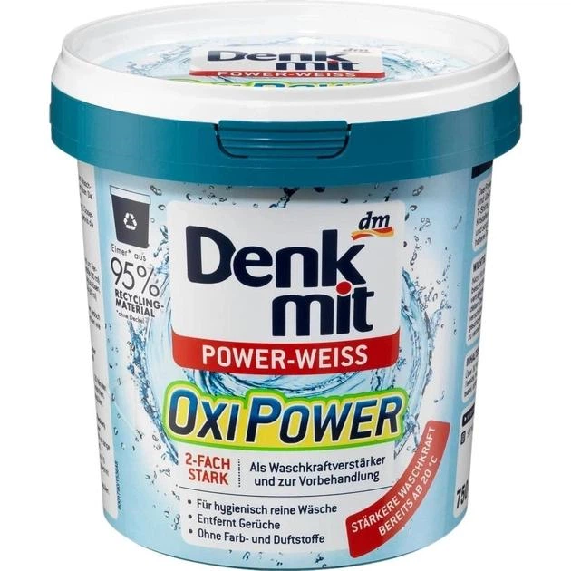 Засіб для виведення плям Denkmit OXI Power для білих тканин 750 г