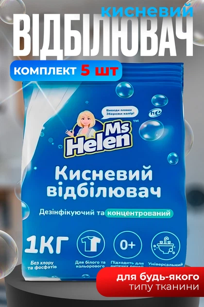 Кисневий відбілювач 5000г порошок засіб для видалення плям Ms Helen КОМПЛЕКТ 5ШТ