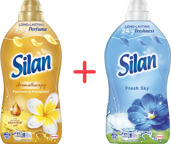 Набір кондиціонерів для білизни Silan Aromatherapy Захоплюючий Франджіпані 1100 мл + Небесна свіжість 1408 мл (9000101584080