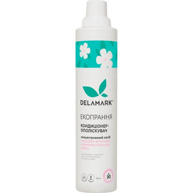 Кондиціонер для білизни DeLaMark з квітково-фруктовим ароматом з нотами амбри 750 мл (4820152330598)