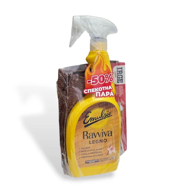 Набір Поліроль для меблів Emulsio, 600 мл + Мікрофібра для меблів IRGE, 40х40 см.