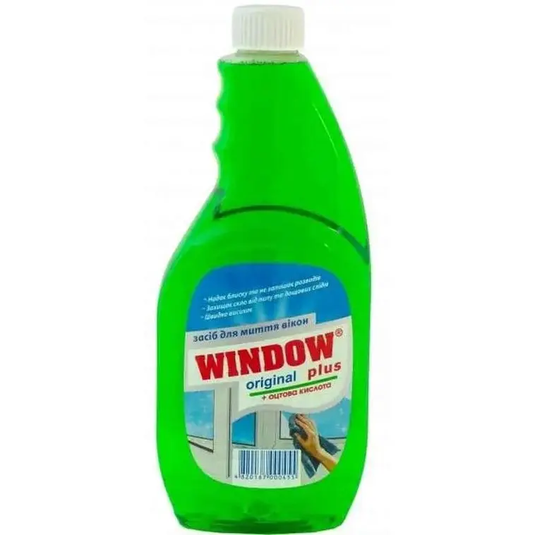 Засіб для миття вікон та скла Window plus на оцтовій основі запаска 500 мл зелений