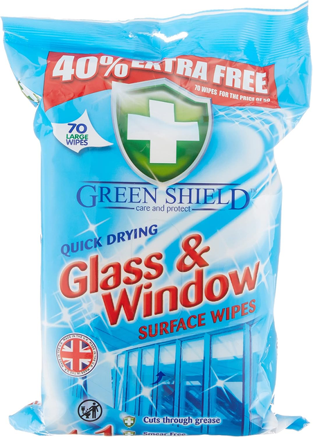 Серветки для очищення скла та вікон Glass window Green Shield 70 шт
