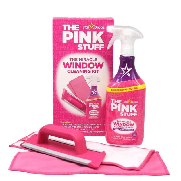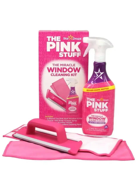 Набір для миття вікон The Pink Stuff Window Cleaning Kit (спрей 850 мл, 2 мікрофібри і ручка для насадок)