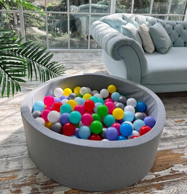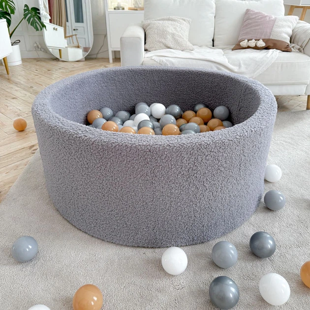 Сухий басейн для дитини м'який Тедді з кульками 100 штук у комплекті 100х40см для дому чи вулиці сірий