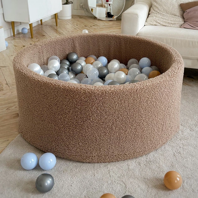 Сухий басейн для дитини від 1 року м'який Тедді шоколад з кульками 100 шт у комплекті 100х40см для дому чи вулиці