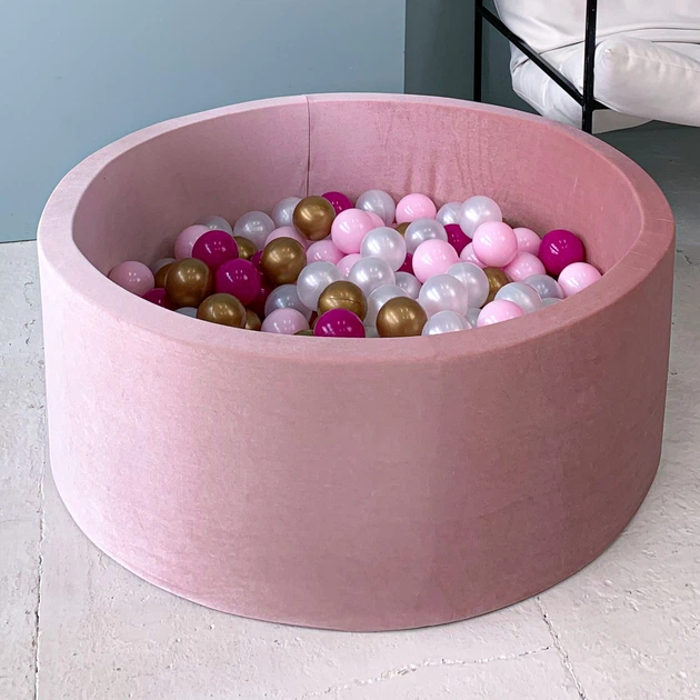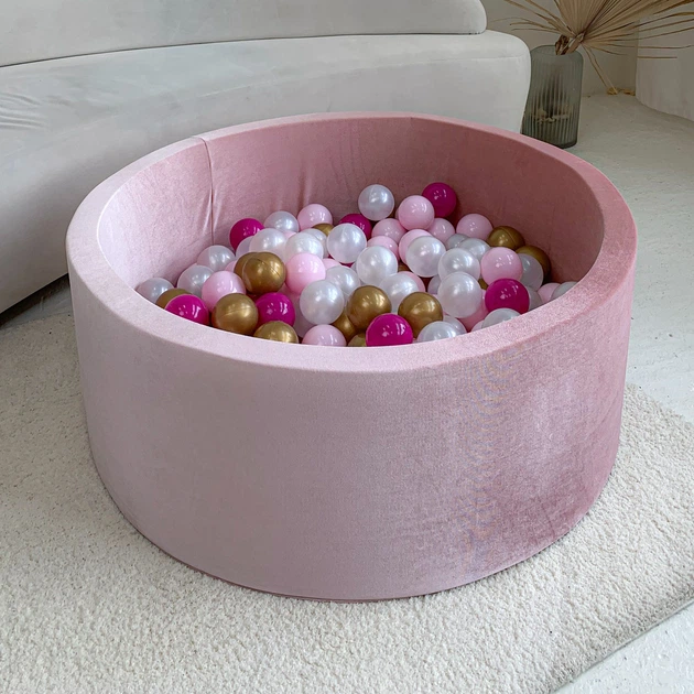 Сухий басейн для дитини від 1 року з кульками 200 шт. в комплекті 100х40см для дитячої в будинку або вулиці Велюр Пудра