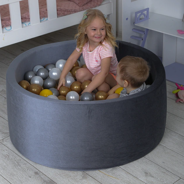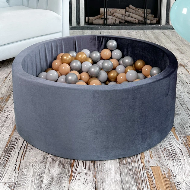 Сухий басейн для дитини від 1 року з кульками 150 шт. в комплекті 100х40см для дитячої або вулиці Велюр сірий