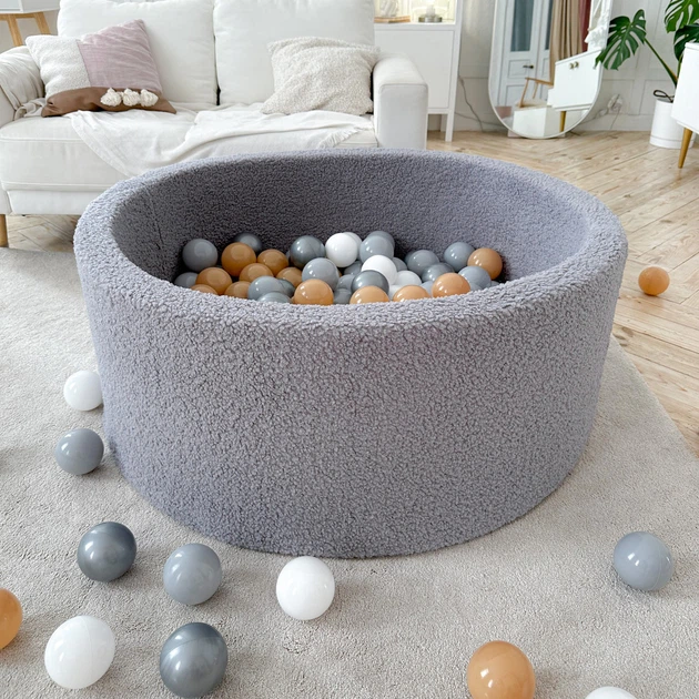 Сухий басейн м'який Тедді сірий з кульками 150 шт в комплекті 100х40см в дитячу