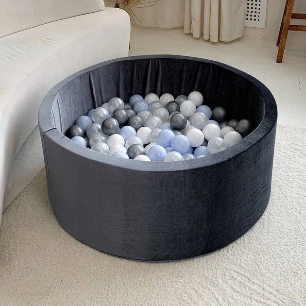 Сухий басейн м'який Велюр сірий з кульками 100 шт. в комплекті 100х40см для дитячої в будинку чи вулиці.