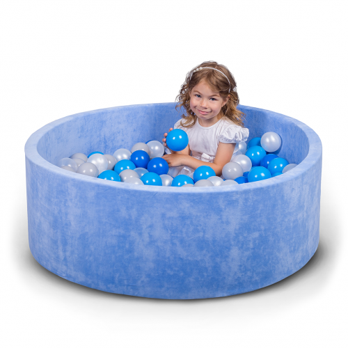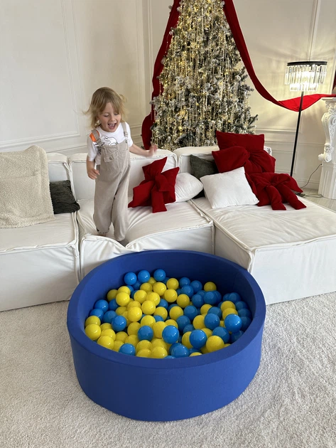 Сухий басейн Синього кольору з кульками 200шт у комплекті 100х40см трикотаж. Сухий басейн для дому та вулиці