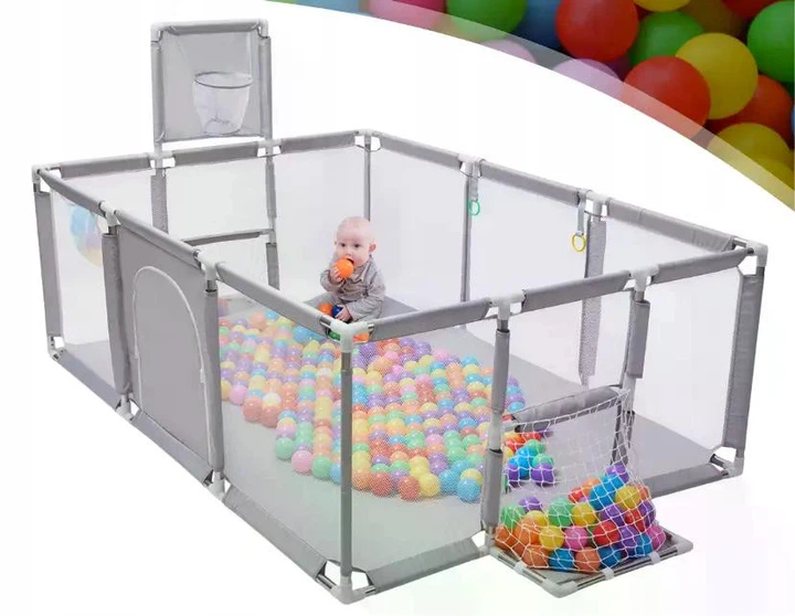 Дитячий манеж Memfis 0724, сірий, сухий басейн 180120 см, з металевим каркасом