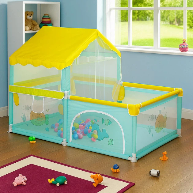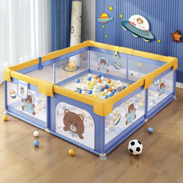 Дитячий ігровий манеж огорожа для ігор з баскетбольною корзиною з кишенею для іграшок дітей 125х125х63см