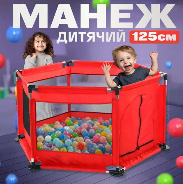 Дитячий ігровий манеж огорожу для ігор з металевим каркасом для іграшок дітей 125х113х64см Червоний