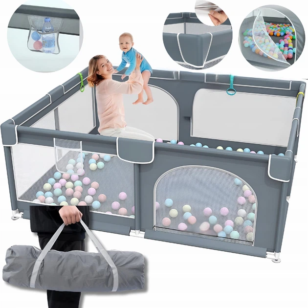 Дитячий ігровий манеж 2в1 XXL — 180150 см, сірий, із 30 кульками та сумкою