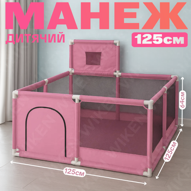 Дитячий ігровий манеж огорожа для ігор з баскетбольною корзиною для іграшок дітей 125х125х64см Рожевий